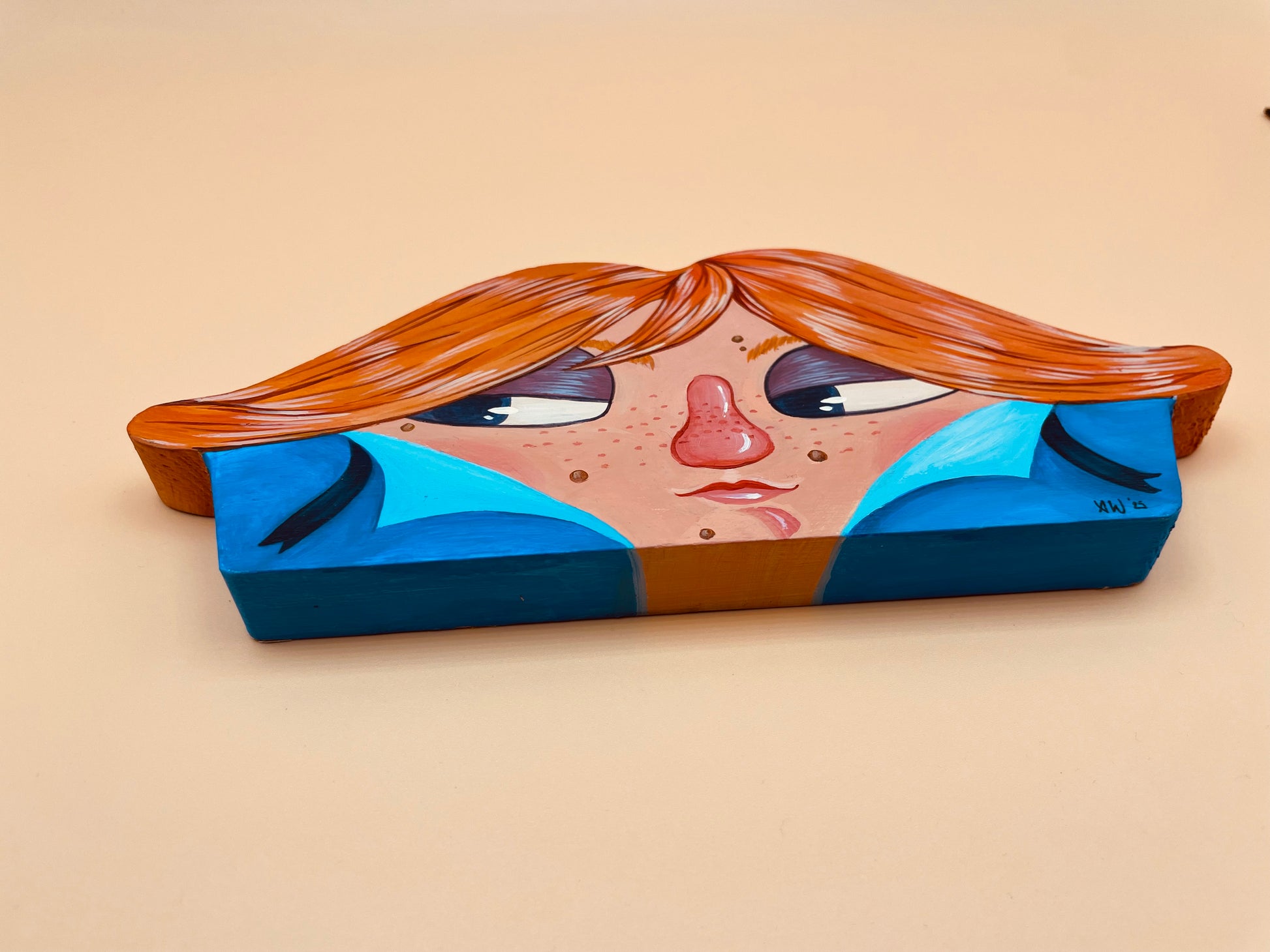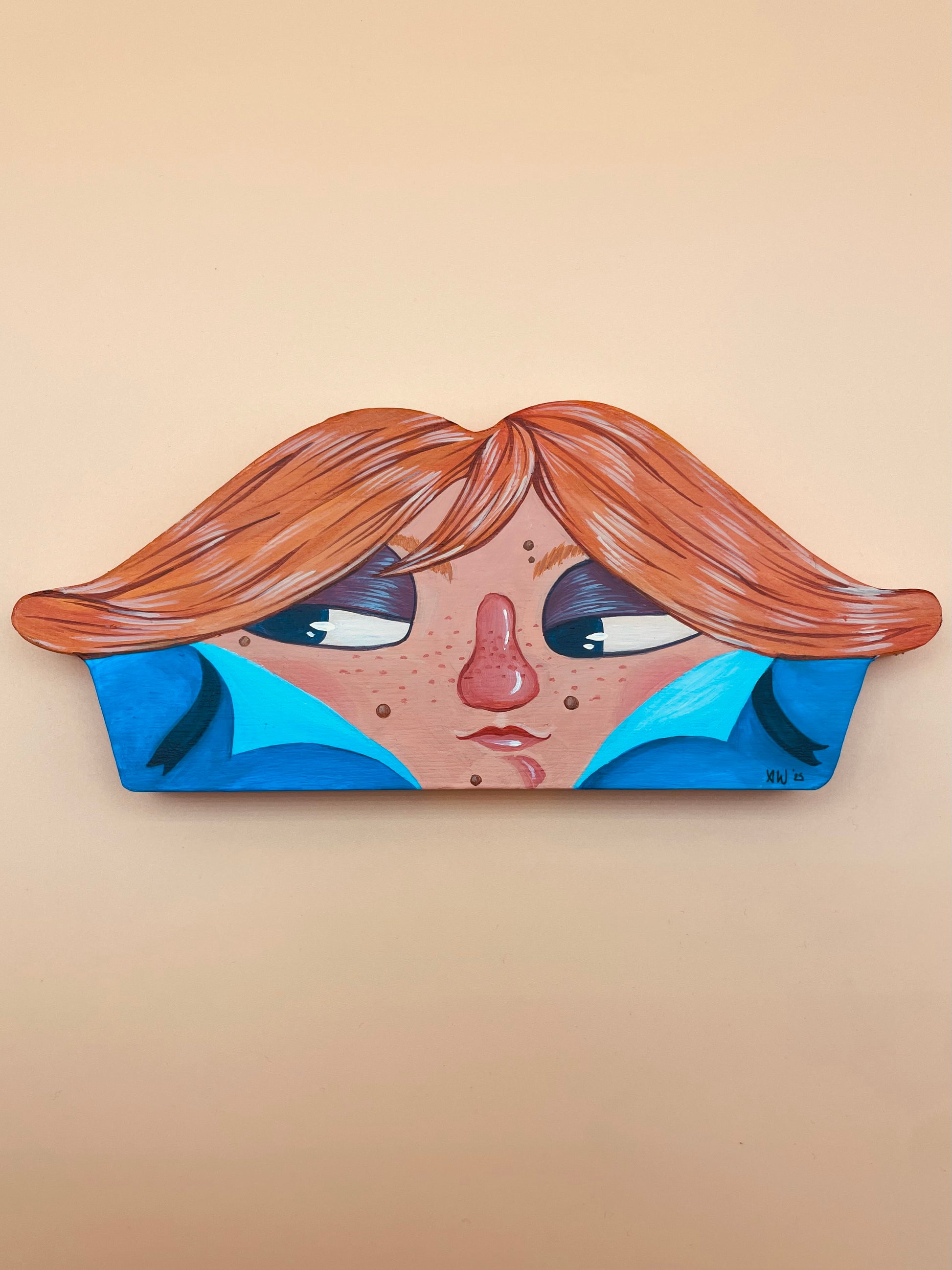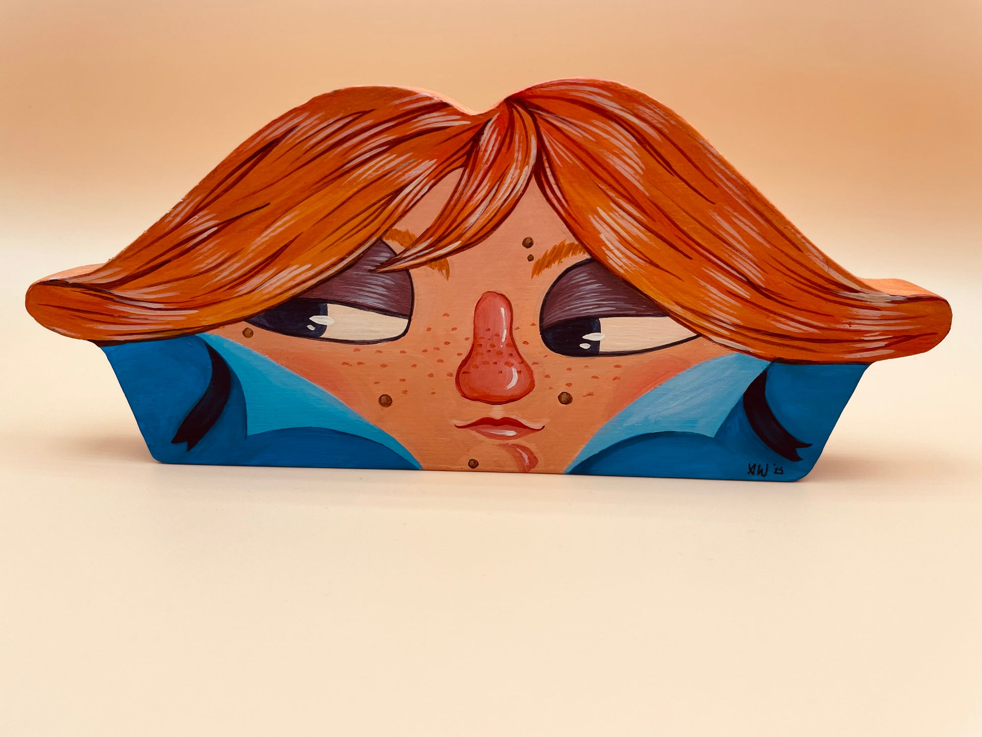 Hand painted acrylic on wood cutout.