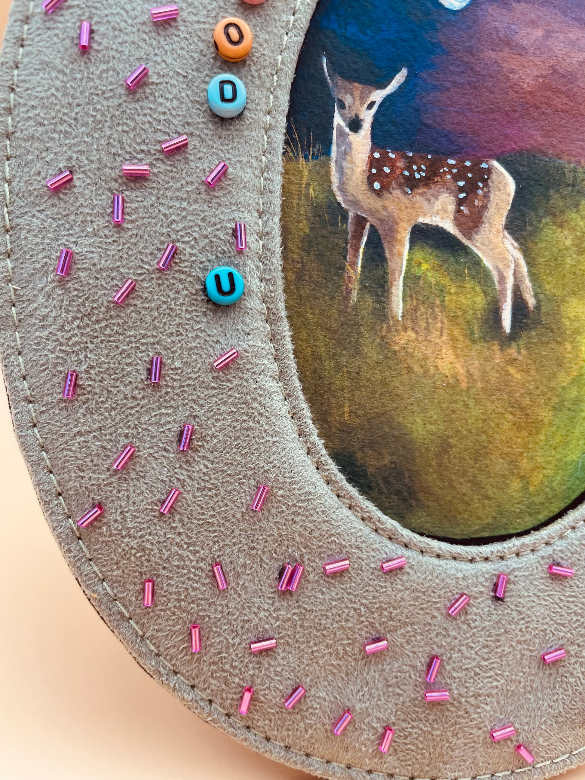 Hand painted watercolor/gouache piece in thrifted frame.