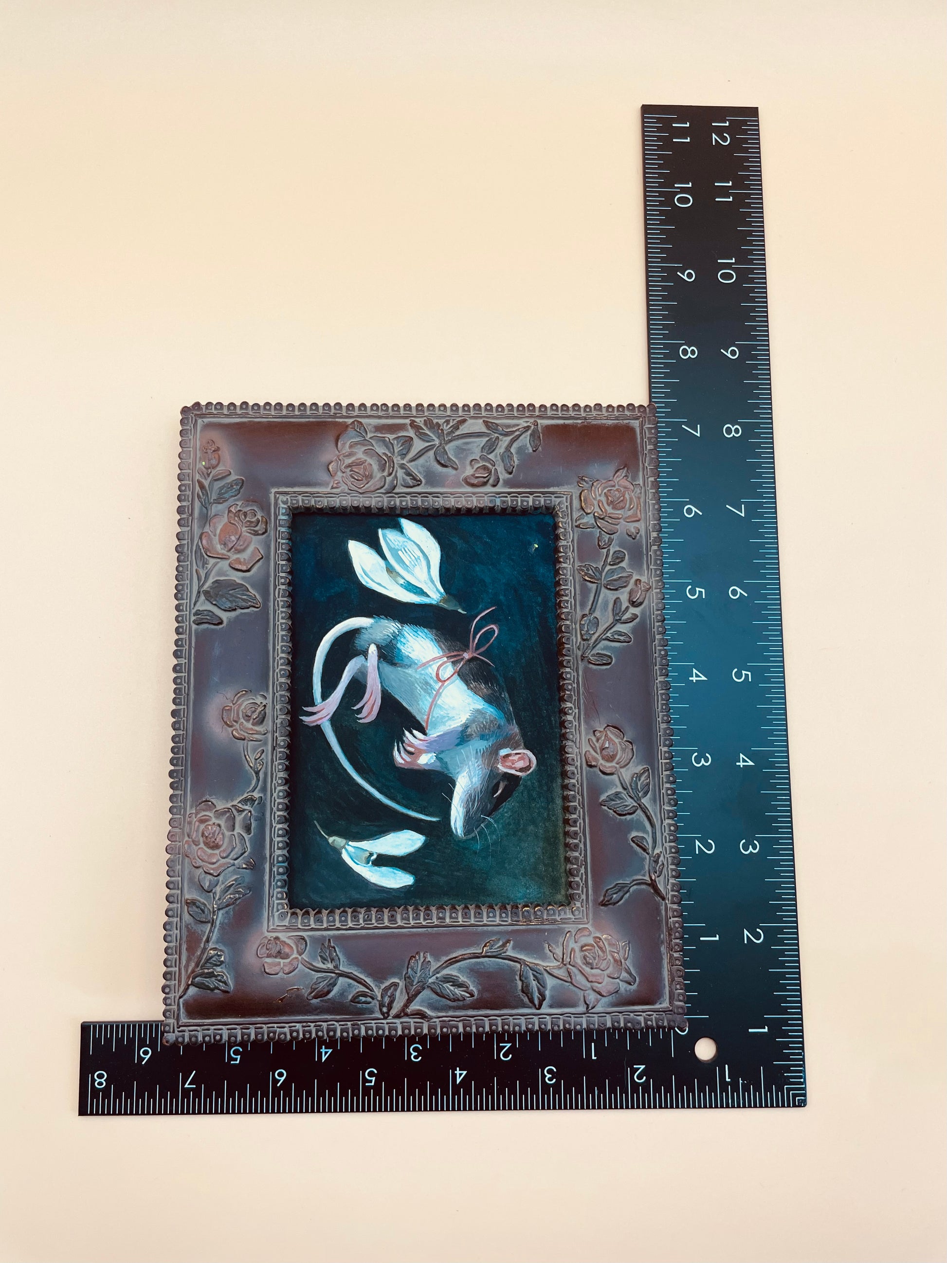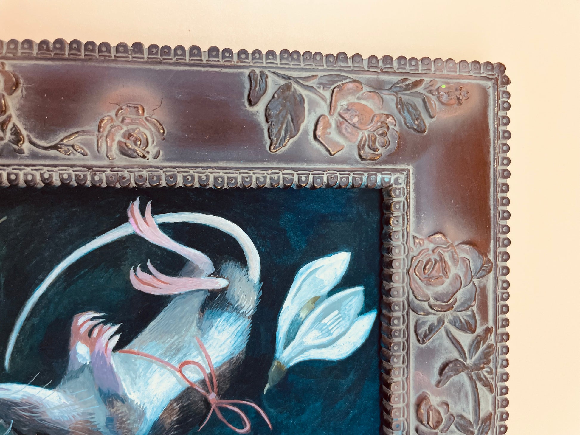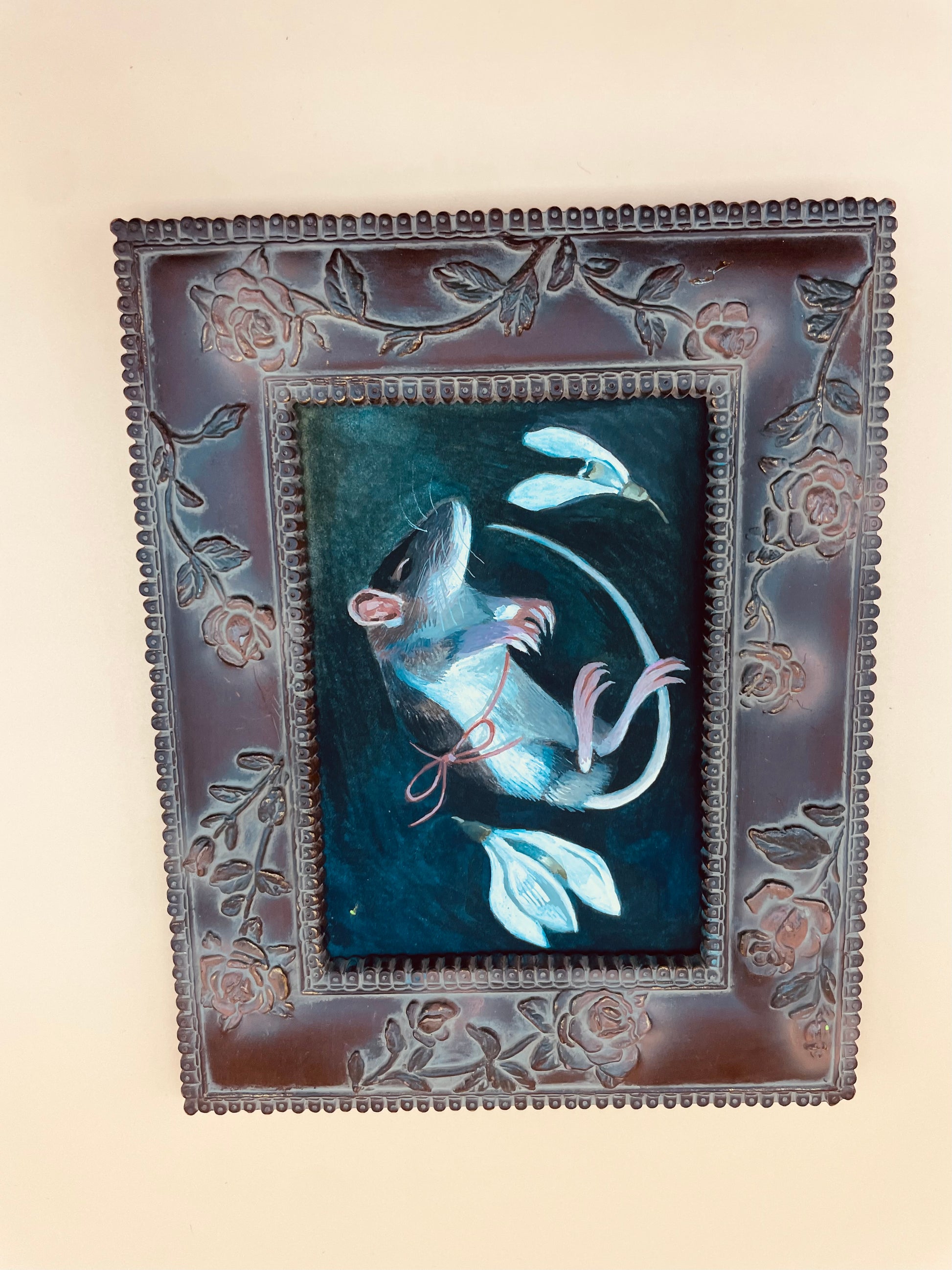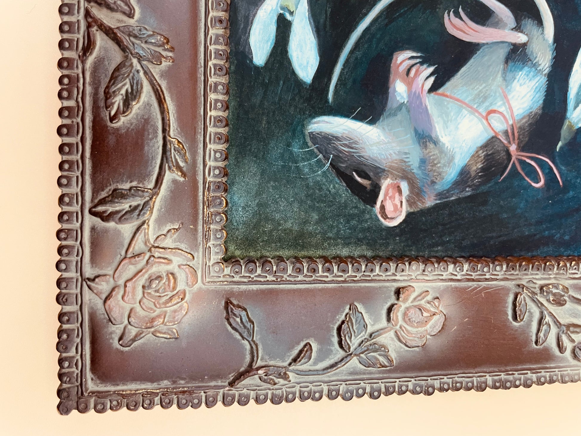 Gouache and acrylic on watercolor paper in thrifted frame.